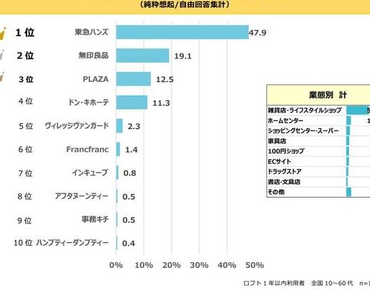 ロフトのライバルがあのチェーンと判明! 競合ランキングで3位「PLAZA」2位「無印良品」を勢を抑えた1位とは