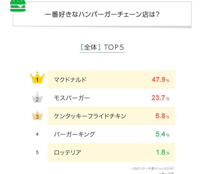 好きなハンバーガーチェーン店ランキング、3位「バーガーキング・フレッシュネス」2位「モスバーガー」1位は?