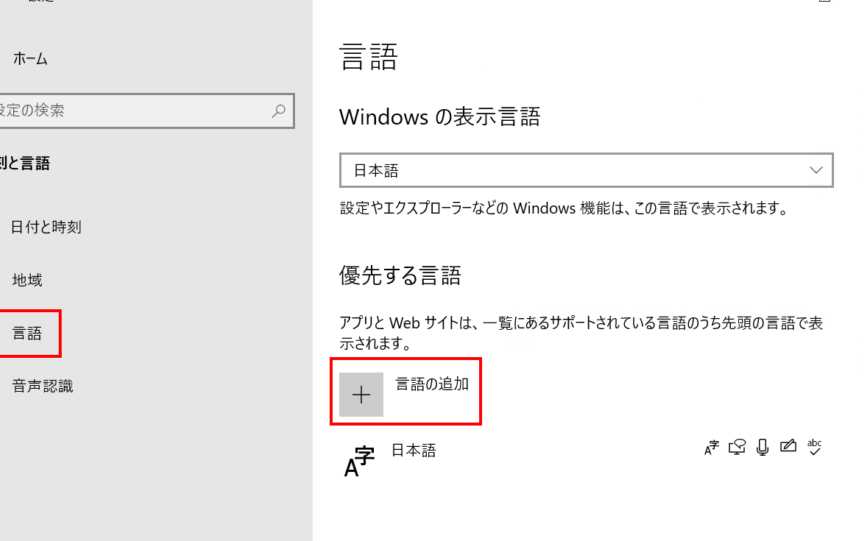 Windows 10で表示される言語を変更する方法は?
