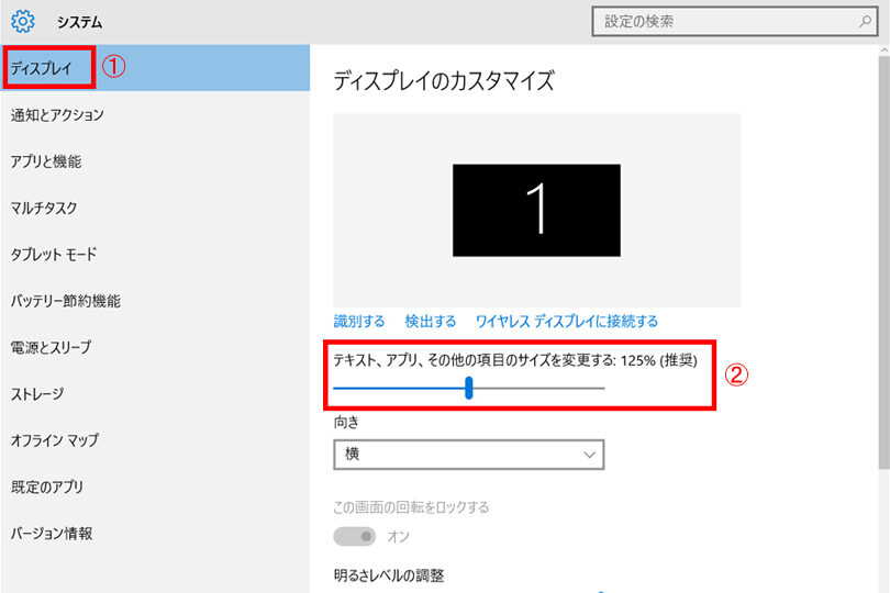 Windows 10でデスクトップの文字の大きさを変更するには、同様に「表示設定」から「テキスト、アプリ、その他の項目のサイズを変更する」を選択します。そこで文字のサイズを調整することが可能です。