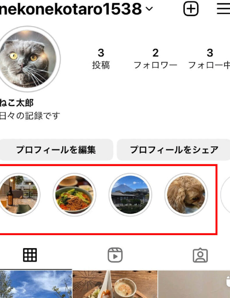 空白文字を入力して、それを<インスタのハイライト>の名前として設定することで作成できます。