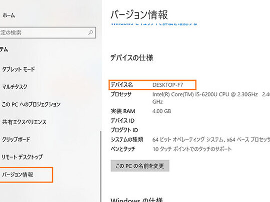 Windows 10でパソコンの名前(PC名)はどこで確認できますか?
