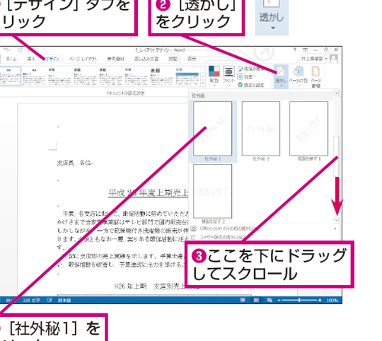 「社外秘の透かし文字を入れる手順は?」