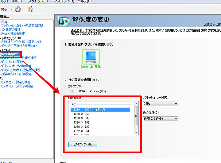 2. 画面解像度とリフレッシュレートの調整