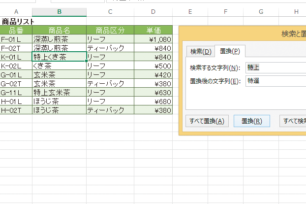 Excelで一括置き換えの方法